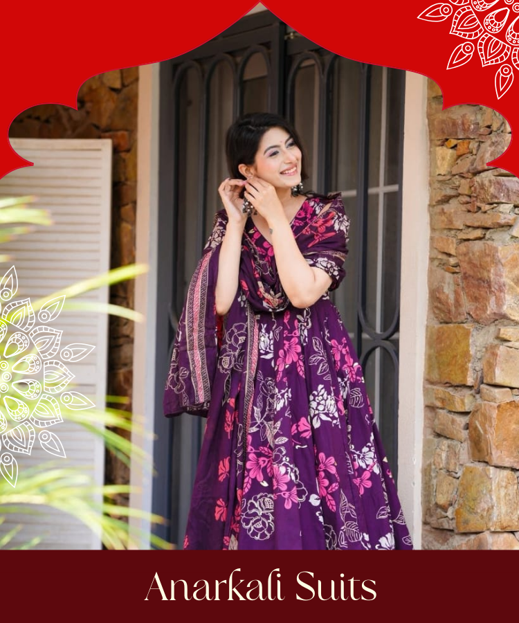 Brown Cotton Printed Anarkali with Attached Jacket Detailing with Pants and Dupatta