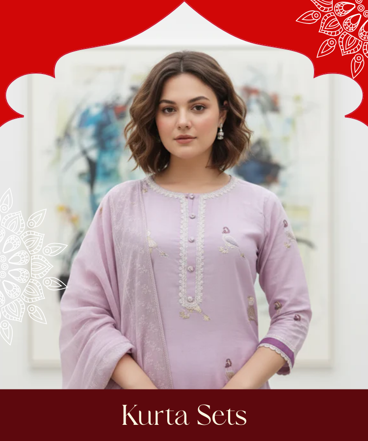 Elegant Mauve Cotton Kurta Set with Chevron Dupatta